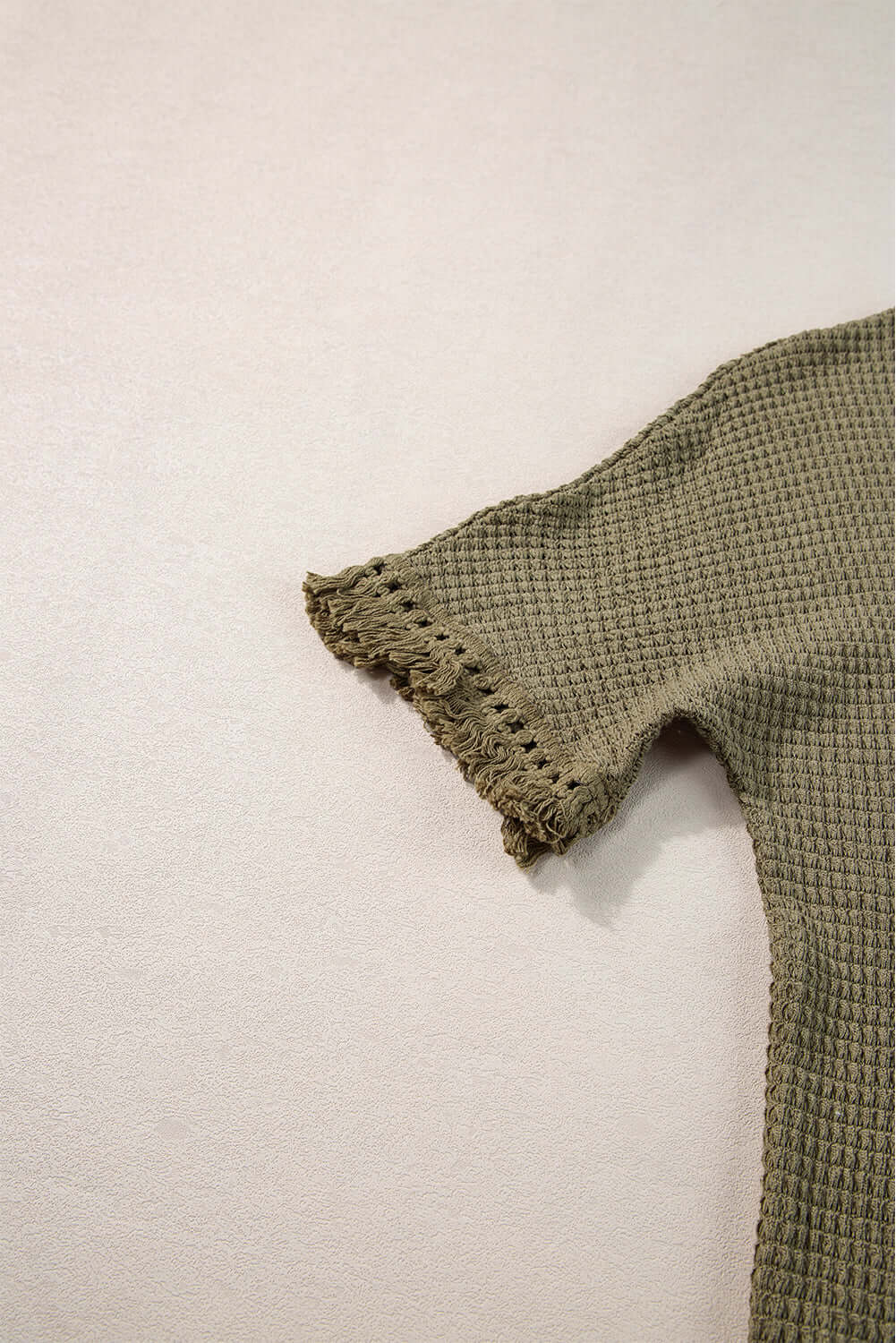 Laurel Green Fringe Trim Textured Short Two Piece Set