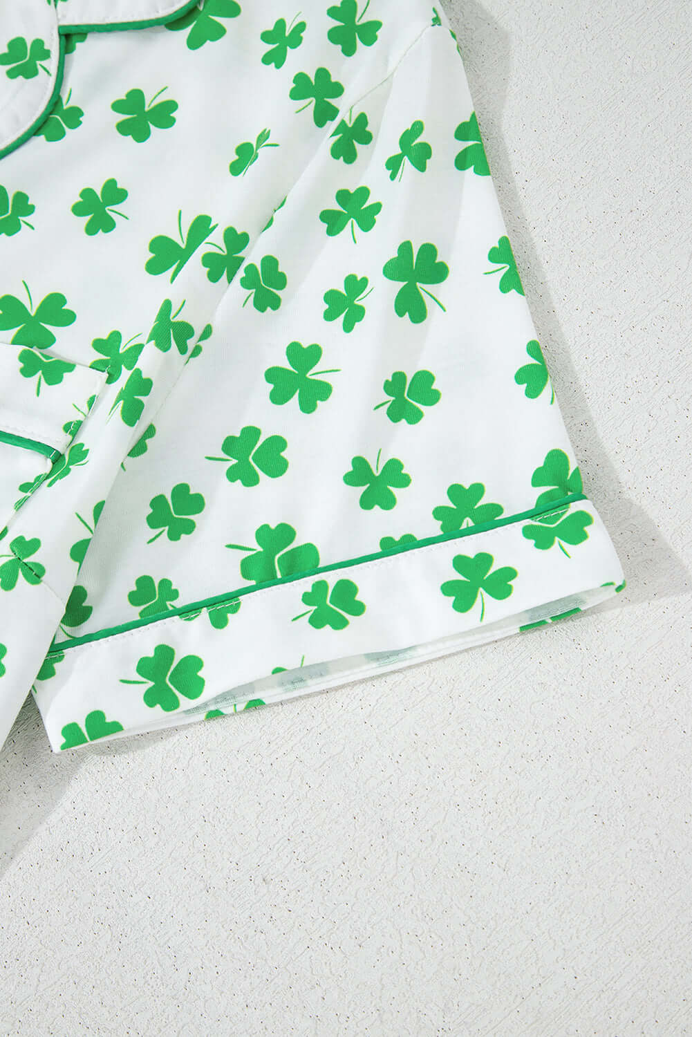 - A modern all-over clover pattern that adds a fresh touch to loungewear